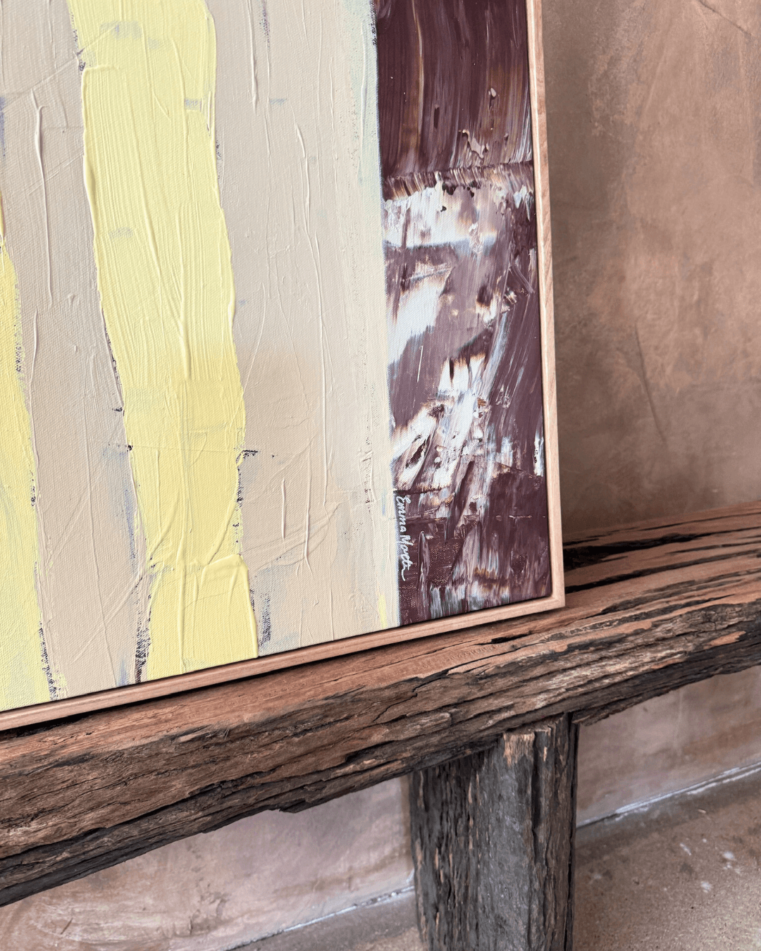 Each original piece is one-of-a-kind and thoughtfully created in my studio. This artwork comes beautifully presented in a handcrafted floating frame made from 100% Tasmanian Oak which offers a warm, timeless finish that complements a range of interiors.